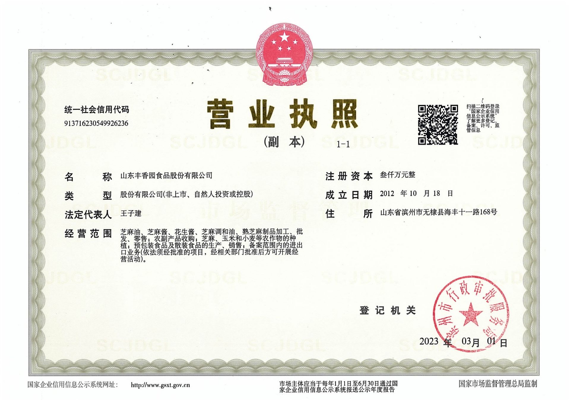 山東豐香園食品股份有限公司位于無棣縣西城工業(yè)園,成立于2012年,注冊資本3000萬元,員工60多人,年銷售收入8000多萬元,是“國家高新技術(shù)企業(yè)”、“中國好糧油”示范企業(yè)、“食安山東”示范生產(chǎn)加工企業(yè),公司集綠色、有機(jī)芝麻食品標(biāo)準(zhǔn)化、生產(chǎn)加工、研發(fā)、出口銷售為一體的山東省農(nóng)業(yè)產(chǎn)業(yè)化“重點(diǎn)龍頭企業(yè)”。 公司獲得HACCP國際質(zhì)量體系認(rèn)證、ISO9001:2015質(zhì)量管理體系認(rèn)證,產(chǎn)品獲得美國FDA認(rèn)證、美國、歐盟有機(jī)食品認(rèn)證、英國BRC體系認(rèn)證、A級綠色食品認(rèn)證、GB國標(biāo)有機(jī)食品認(rèn)證。 公司主要產(chǎn)品有芝麻油、芝麻醬、花生醬、芝麻粉和烘焙芝麻、兒童芝麻食品系列等六大種類上百個品種,產(chǎn)品出口美國、日本、韓國、新加坡、俄羅斯、澳大利亞、美國、等30多個國家。2018-2019年連續(xù)兩年芝麻食品出口量排名山東省第三位、濱州市第一位。 山東豐香園食品股份有限公司是國家級高新技術(shù)企業(yè),建有省級“一企一技術(shù)”研發(fā)中心、市級企業(yè)技術(shù)中心和市級工程實(shí)驗(yàn)室、市級工程技術(shù)中心等多個創(chuàng)新平臺,擁有發(fā)明專利2項,實(shí)用新型專利21項,先后獲得省級“專精特新”中小企業(yè)、市級農(nóng)業(yè)產(chǎn)業(yè)化聯(lián)合體、科技型中小企業(yè)、濱州市級瞪羚企業(yè)、市級“一企一技術(shù)”創(chuàng)新企業(yè)和濱州市新興產(chǎn)業(yè)“白名單”企業(yè)等榮譽(yù)稱號。